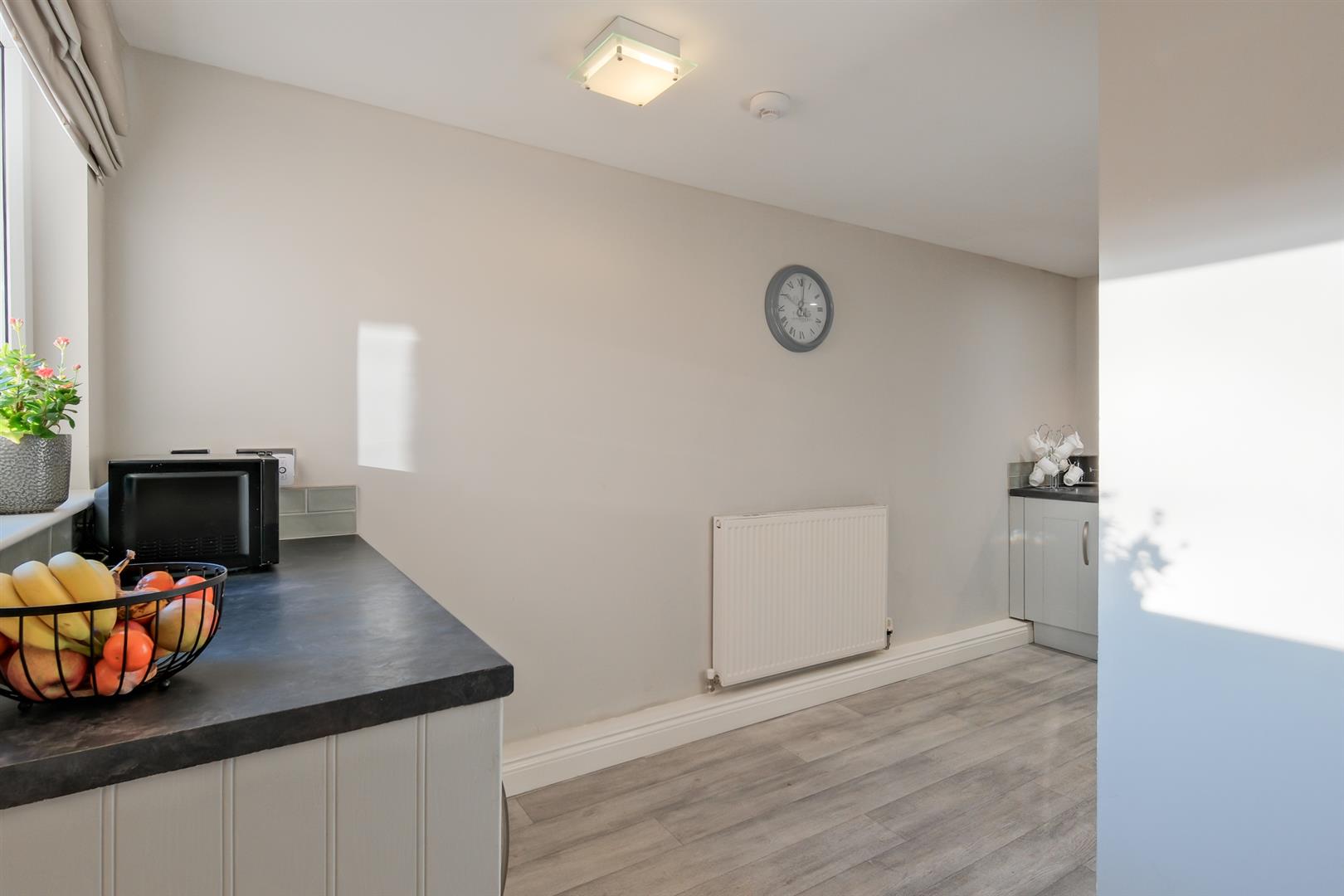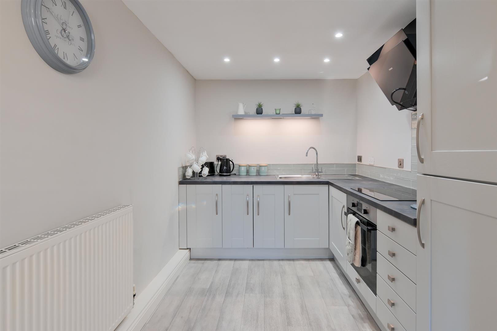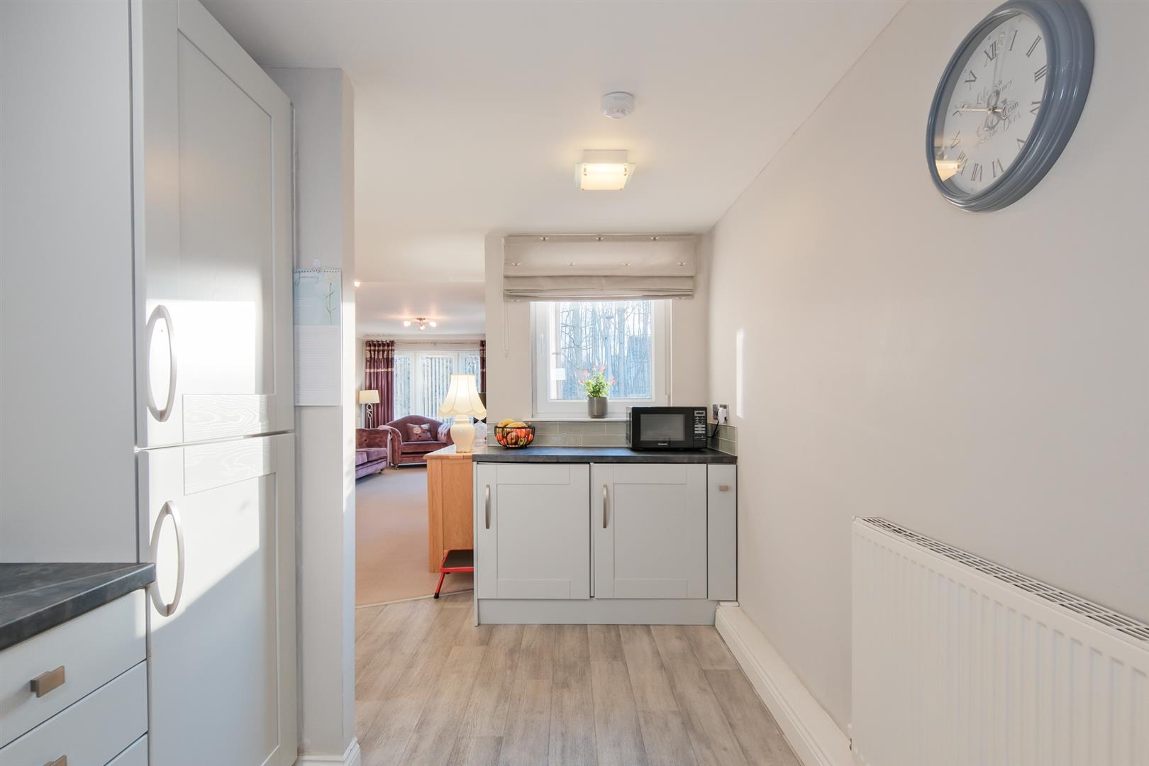 The accommodation has been finished with fresh neutral décor throughout and comprises a welcoming reception hallway, an extremely spacious lounge benefitting from a wealth of natural light flooding in from the triple window aspect with ample space for dining and entertaining, a modern kitchen with integrated appliances, double bedroom with en suite facilities and seperate wet room.